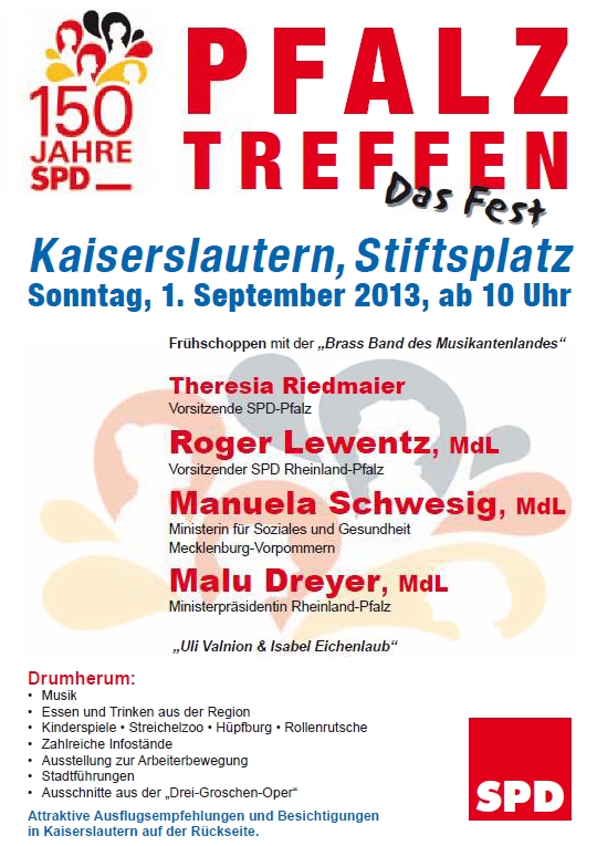 Auch dieses Jahr wieder organisiert der SPD-Ortsverein Winnweiler den Kinder- und Jugendflohmarkt im unteren Bereich der Gymnasiumstraße. Auf vielfachen Wunsch der Beteiligten findet der diesjährige Flohmarkt nicht am letzten Ferienwochenende statt, sondern am 2. Samstag nach den Sommerferien, also am 31. August 2013. Nähere Informationen werden wir Ihnen noch rechtzeitig mitteilen. Für Rückfragen können Sie sich gerne an Frau Christa Mayer (2929) oder an Frau Sonja Reisch (984693) wenden.